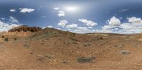 a panorama of the desert with lots of vegetation on it and mountain under cloudy skies