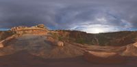 a 360 - up photo of the sky and surrounding mountains in a desert like setting