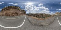 this is a 360 view of a road at different angles in the camera angle and of the one is the sky