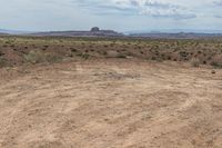 A day in the San Rafael Swell, Utah, with a landscape of red rock canyons, open spaces, and rugged terrain. The gloomy grey sky contrasts with the beige desert sand. Off-road tracks cutting through the plain and fields reveal the untouched beauty of nature.