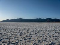 A scenic landscape photo of the Bonneville Speedway in Utah. The open desert, salt surface, and clear sky create a stunning backdrop. Mountains and sand add to the natural beauty of the area. A perfect day to explore Salt Lake City.