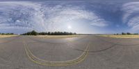 A panoramic view of a wide open road in Berlin, Germany. The road stretches into the distance, lined with trees and surrounded by a clear sky and clouds. The calm and serene atmosphere sets the stage for a peaceful city life.