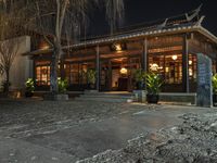 A charming old town in Yunnan, China with historic architecture and cobblestone roads. The village is illuminated by artificial light at night, creating a magical atmosphere. Lijiang and Shangri-La are popular tourist destinations in Asia.