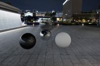 This 3D scene captures a modern urban plaza, ideal for automotive and product renders. The scene features a wide expanse of paving stones, surrounded by contemporary architecture including hotel and office buildings, indicative of a city's financial district. The night setting is illuminated by artificial streetlights, casting a gentle glow that enhances reflections and provides realistic lighting data for rendering. The open space and minimalist design offer a versatile backdrop suitable for showcasing vehicles or other products in an upscale, urban environment.